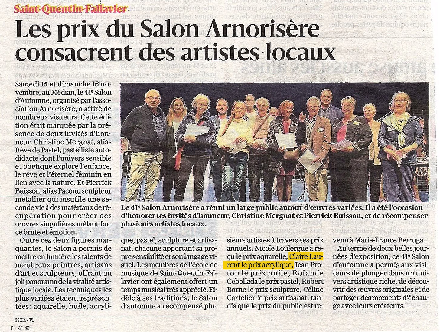 - Prix de peinture acrylique : Claire Laurent.