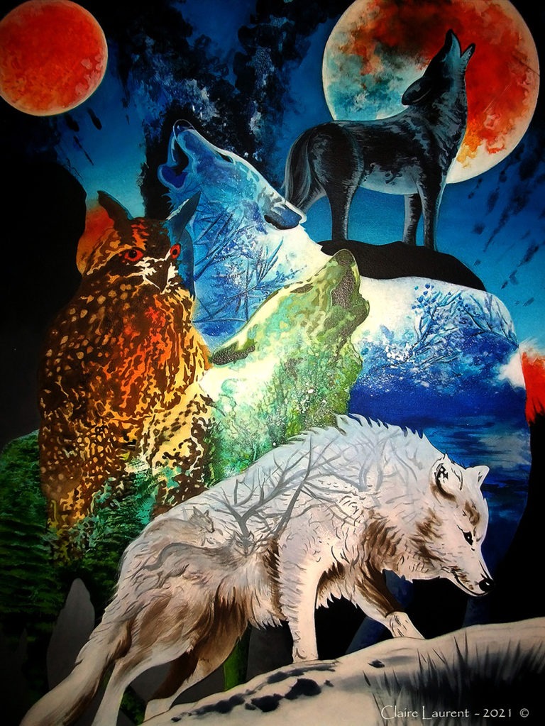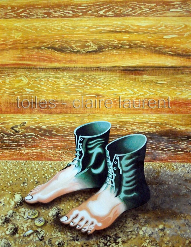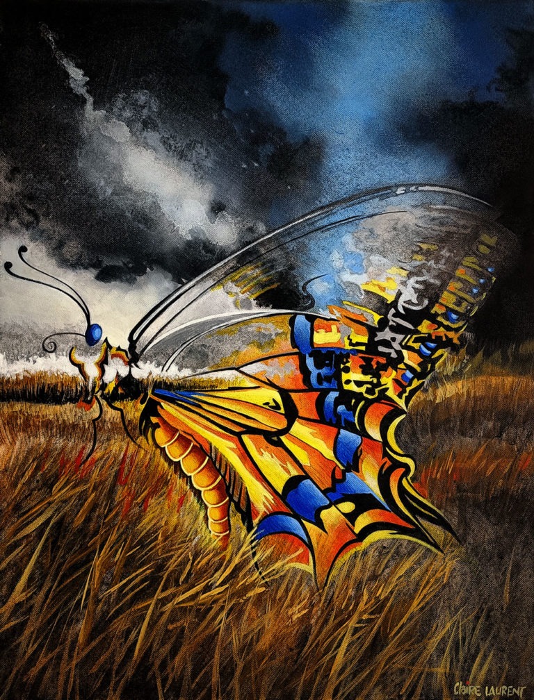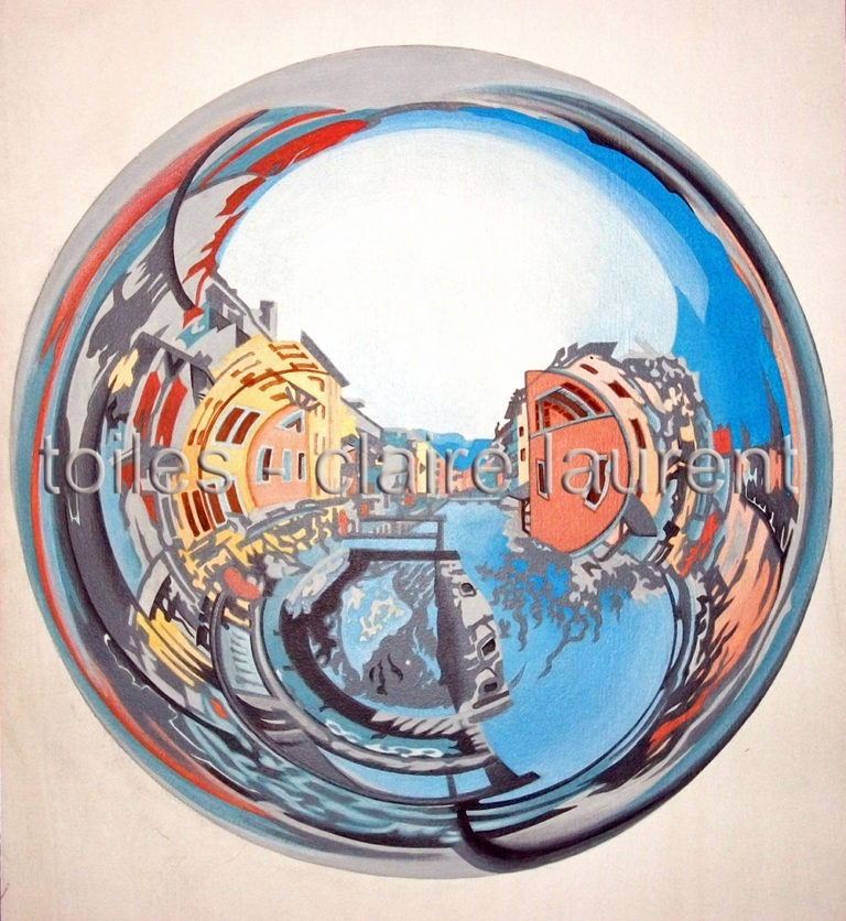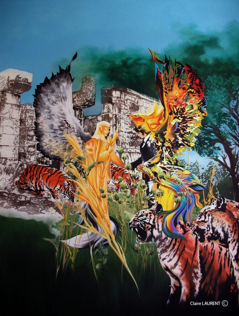 Claire Laurent exprime son talent en format géant sur les murs des bâtiments. Fresque monumentale, trompe-l’oeil architectural, faux plafond, fausse matière, cette ancienne élève des Arts Déco a souvent travaillé sur commande pour mettre en valeur les idées des autres; puis ce sont ses idées qu’elle a souhaité exprimer sur toile, dans une veine réaliste parfois surréaliste.