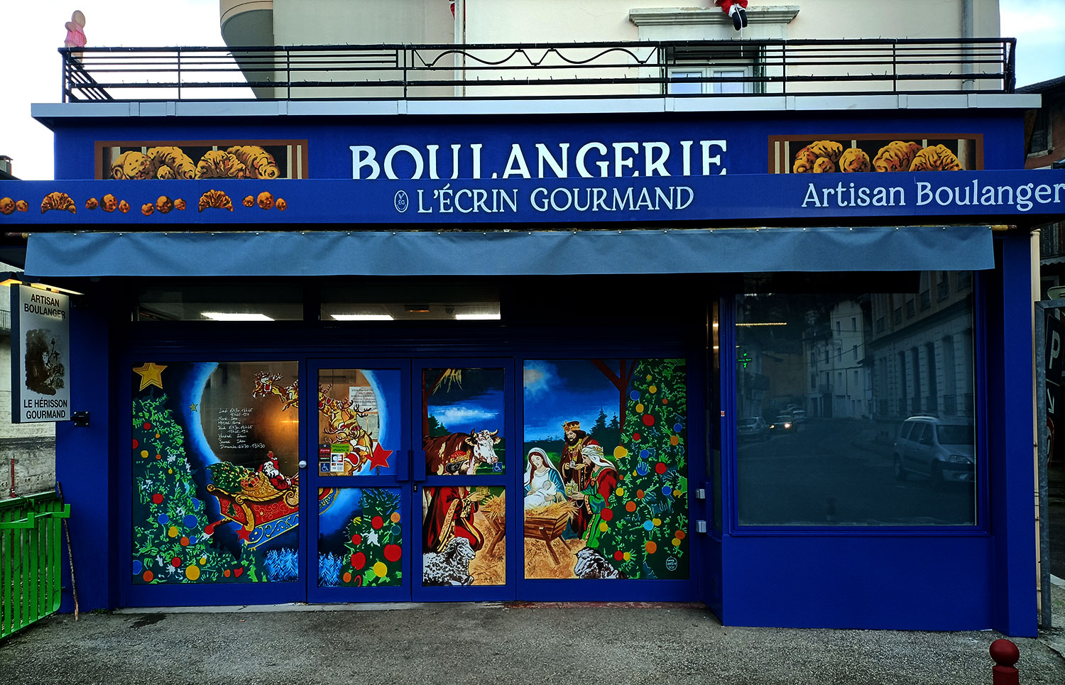 sur la vitrine de l'Ecrin Gourmand - Boulangerie à Tenay